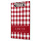 Klassische, rot-weiß-markierte Gingham-MusterZwischenablage mit personalisiertem Namensdruck auf der Vorder- und Rückseite. Matching-Schreibwaren vorhanden.
