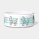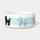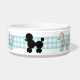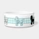 Der hübsche Hundenahrungsmittelteller, der mit einem hellen Türkis getan werden und der weiße Gingham versehen, um den Teller und die Grafiken der Schwarzen und weißer flaumigen Pudel des Türkises, ganz um den Teller mit einem Band. Das Besonders anfertigen erlaubt Ihnen, Text zu addieren, denn eine personalisierte Schüssel Ihr Hund kann auf stolz sein. Macht eine große Geschenkidee.