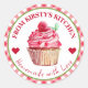 Gingham Raspberry Cake Label Runder Aufkleber