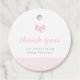 Dieses Dankeschön-Tag, das sich mit Lea Delaveris Design's rosa Gingham Baby Duschkollektion abstimmen lässt, zeichnet sich durch ein süß-rosa Gingham-Muster und einen zauberhaften kleinen Polka Dot Babybogen aus, zusammen mit zwei Räumen für anpassbaren Text.