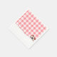 Eine reizende Party-Serviette mit einem handgezeichnet Teddybär, der hinter zerrissenem Papier aus dem Set herausguckt, vor einem weichen rosa Gingham-Hintergrund. Dieses süße Design verleiht jedem Geburtstagsfest eine spielerische Touch. Ideal für die Paarung mit passenden Einladungen, Buttonen, Wasserflaschen und anderen Accessoires aus meinem Geschäft.
