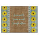 "Lebe gut, Liebe viel, lache oft" Zitat auf dem Sprung mit grünem und weißem Gingham-Rand mit gelben Tischtennis wie Blume für deine rustikale oder ländliche Küche. Ändern Sie den Text in Ihr Lieblings-Sprichwort. Benutzerdefiniertes Design