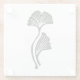 Minimalistischer lino Druck eines vertikalen Gingko Blatt in schwarz und weiß.