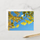Ende November sind die Blätter eines Gingko-Baumes in einem japanischen Park saurgelb gegen einen kühnen, blauen Himmel.
