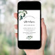 Vorderseite: ein stilvoller weißer Hintergrund mit schlichten goldenen Ginkgo-Blätter. Personalisieren Sie Ihren Namen und Ihre Party-Daten und fügen Sie diese hinzu. Zurück: smaragdgrünes Hintergrund.