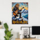 Dieses beeindruckende Kunstwerk besticht durch einen Löwen, eine coole Sonnenbrille und eine Lederjacke. Auf einem schneebedeckten Berg spielt eine E-Gitarre intensiv. Eine weitläufige, eisige Landschaft mit einem blauen See und weiten Gipfeln erstreckt sich unter einem teilweise bewölkten Himmel. Die dicken, strukturierten Pinselstriche verleihen dem schneebedeckten Gelände ein robustes, dynamisches Gefühl und vermitteln so den "Rock or Die"-Geist dieser einzigartigen Höhenleistung.
