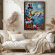 Ein einzigartiges Kunstwerk, das einen Hai zeigt, in einem klangvollen Hut gekleidet und mit einer stilvollen Sonnenbrille besticht, und auf einer elektrischen Gitarre aus einem schneebedeckten Berghang Melodien auszeichnet. Die Kulisse ist von einem klaren, blauen Gewässer mit Eissplittern und schneebedeckten Gipfeln umgeben. Die Verwendung schwerer, ausdrucksstarker Pinselstriche verleiht dem Schnee und dem Wasser eine taktile Qualität, die das knechte und gleichzeitig kraftvolle "ROCK and ROLL"-Flair noch verstärkt.