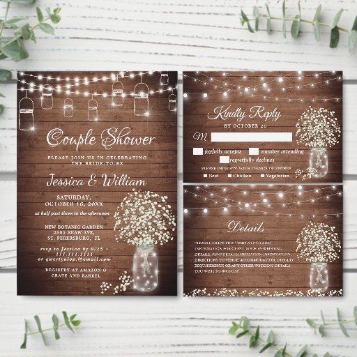 Gipskraut Mason Jar Rustikale Engagement Partei Einladung