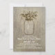 Rustikales Holz und Baby's Atem Mason Glas Probe Dinner Einladungen für Country Hochzeiten in der Scheune, Farm oder Ranch.