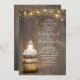 Die Probe aus rustikalem Holz lädt zum Abendessen ein: Weinfass, Baby-Atem-Blume, Lichterkette und Vintage Lampe - Laterne