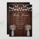 Gipskraut String leuchtet rustikale Babydusche Einladung. Der Atem des Blumenbabys und die rustikalen Saitenleuchten Set vor einem eleganten, romantischen Holzhintergrund. Ideal für eine Land- oder Winterdusche. Personalisieren Sie dieses individuelle Design mit Ihren eigenen Details.