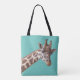 Portraitfotografie einer niedlichen Giraffe auf einem aquamarinen grünen Hintergrund, aber Sie können die aquamarine Hintergrundfarbe in jeder beliebigen Farbe ändern, indem Sie das Produkt anpassen.