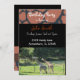 Ein cooles Design mit einem braunen Rahmen mit einem Giraffenfellmuster. Zwei phantastische Giraffen weiden auf einem Feld. Passen Sie Ihre Geburtstagsfeierinformationen auf Wunsch an.