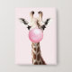 Giraffe bläst Pink Bubble Gum Whimsical Art Button