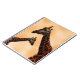 Auf einem blended orangen Hintergrund sind zwei schöne Giraffen abgebildet