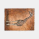 Eine Fotografie einer schönen Giraffe auf einem braunen strukturierten Hintergrund.