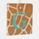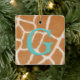 Dieses Ornament hat ein Aqua-Monogramm über Giraffen-Flecken. Passen Sie den Rücken mit Ihrer eigenen Nachricht an.