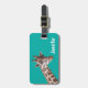 Porträtfotografie einer niedlichen Giraffe auf einem aquamarinen grünen Hintergrund.