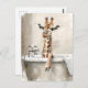 Ein Gemälde einer niedlichen whimsikalen Giraffe im Bad.