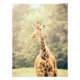 Portrait einer Giraffe im Regen, grün-gelbe Farbfoto.