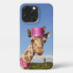 Giraffe in funkelnd-rosa Hut iPhone Hülle