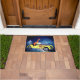 Giraffe im Weltraum - lustige Illustration einer Giraffe im Sportwagen, die im Weltraum schwimmt.