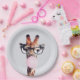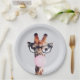 Giraffe mit Brille, die ein rosa Kaugummi bläst Pappteller