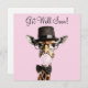 Giraffe mit Gläsern, einen Tophut und bläst einen rosa Kaugummi. Gute Begrüßung