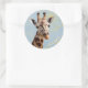 Adorable Giraffe-Rundaufkleber mit realistischem Giraffenbild, digital ergänzt mit Ölpastelleffekt und abstrakten Designelementen auf himmelblauem Hintergrund - mit ihrem Namen anpassen - von katz_d_zynes
