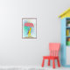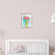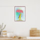 niedliche Giraffe mit einem großen, sternenrosa Regenschirm auf blauem pastellfarbenem Hintergrund