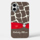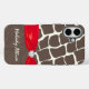 Personalisierte Telefonzelle mit Giraffenmuster und Imitate rubinrote Schleife und Imitate Diamant Fügen Sie Ihren Namen oder kurze Zitat hinzu