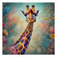 Eine Giraffe mit detaillierter Wasserfarbe mit ausdrucksvollen Augen wird vor einem weichen, verschwommenen Hintergrund dargestellt. Die natürlichen Farben verstärken das lebensechte Aussehen.