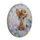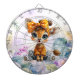 Giraffe with big puppy dog eyes wearing a polka dot bow and knitted jumper