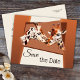 Eine niedliche und romantische Save the Date Postkarte mit einem Gemälde von Giraffen in der Liebe. Save the Date für ein Paar, das im Zoo heiraten, Tiere lieben oder eine Safari-Flitterwoche planen möchte.