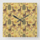 Giraffe seamless pattern yellow background quadratische wanduhr