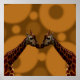 Auf einem braunen, runden Hintergrund sind zwei identische Giraffen abgebildet
