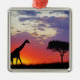 Giraffe, Silhouette bei Sonnenaufgang, Giraffa Silbernes Ornament