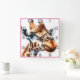 Giraffe spaziert die Savanne bei Sonnenuntergang Quadratische Wanduhr