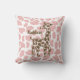 Rosa und braune Giraffe und gepunktete Kissengestaltung mit individuelle Name oder Monogramm, wie gewünscht.