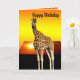 Auf einem goldenen Sonnenuntergang präsentiert sich eine Giraffe in einem dimensionalen Design mit einem fröhlichen Geburtstagslogo auf der Vorderseite und besten Geburtstagswünsche auf der Innenseite, die Sie personalisieren können.