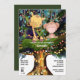 Eine bezaubernde Aquarellillustrierung einer Babygiraffe und eines Affen, die ihre Pfoten über einem moosbedeckten Zweig hängen, in einem großen Baum, in dem sich Imitate glitzernde Glühwürmchen und Lichter an der Saite befinden. Sie sind von hängenden Weinreben und einem dunkelgrünen Hintergrund umgeben. Die schwarzen Vorlagen können personalisiert sein, um Ihre Anforderungen zu Anzug. Ideal für Safari; Dschungel- und Zootheater mit Babydusche Party.