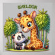 Giraffe und Panda Mit Monogramm Name | Poster