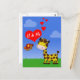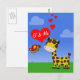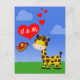 Eine niedliche und farbenfrohe Illustration mit Giraffe und einem Schmetterling mit roten Herzen.