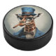 Giraffe wearing a top hat smoking a cigar eishockey puck