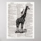 Vintages Wörterbuch-Kunstposter. Die ursprüngliche Abbildung wird auf die Seite vergrößert, auf der sie angezeigt wird. Gutes Geschenk für das Wort Geek oder jemand, der Giraffen Lieben.