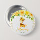 Dieser niedliche und skurrile Knopf kann mit einem Namen oder Titel personalisiert werden, wie z.B. Mama, Oma, Nichte, große Schwester etc. Das Design ist mit einer hübschen Giraffe mit einer Blume-Krone und gelben Blumenarrangements mit Imitaten Gold Glitzer Confetti. Der Text kombiniert handgeschriebene Skripte mit serifenlosen Schriftart für ein stilvolles und modernes Design. Das ist ideal für eine Babydusche mit Giraffenmotiven. Grafik von Heyiamalice und SunflowerDayLove