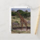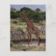Klassische afrikanische Szene von Giraffe und Zebra rund um einen flachen Wassererhole im Masai Mara, Kenia. Vollständig anpassbare Postkarte.