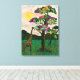 Flugzeug von Afrika II von Alonzo Saunders. Die Schönheit des Breitlebens wird in dieser Kunst festgehalten, während die Sonne langsam untergeht, während eine Giraffe Blätter von einem bunten Baum auf den afrikanischen Flugzeug isst. | 132935GG
