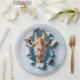 Giraffe zum Geburtstag, die durch einen Papierloch Pappteller