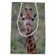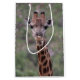 Headshotphotographie einer Giraffe, die direkt der Kamera betrachtet.